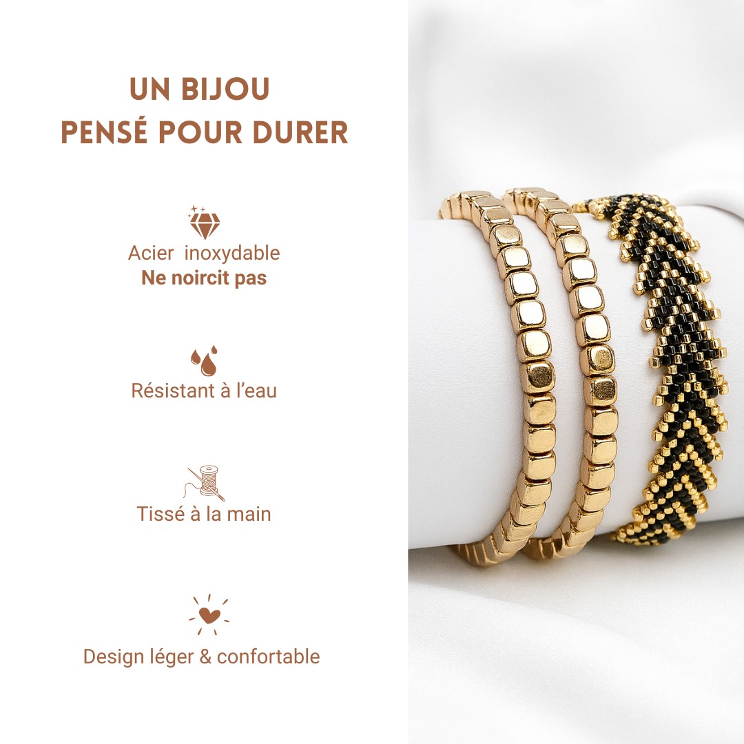 Nos bracelets sont conçus pour durer, accompagner vos moments précieux et illuminer chacun de vos gestes.