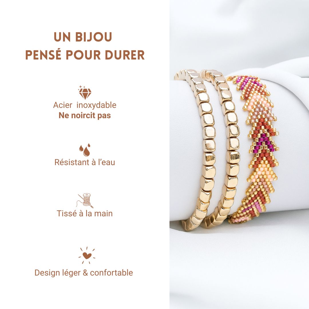 Nos bracelets sont conçus pour durer, accompagner vos moments précieux et illuminer chacun de vos gestes.