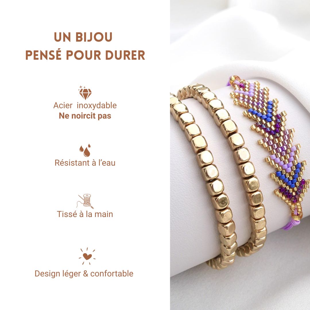Nos bracelets sont conçus pour durer, accompagner vos moments précieux et illuminer chacun de vos gestes.
